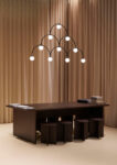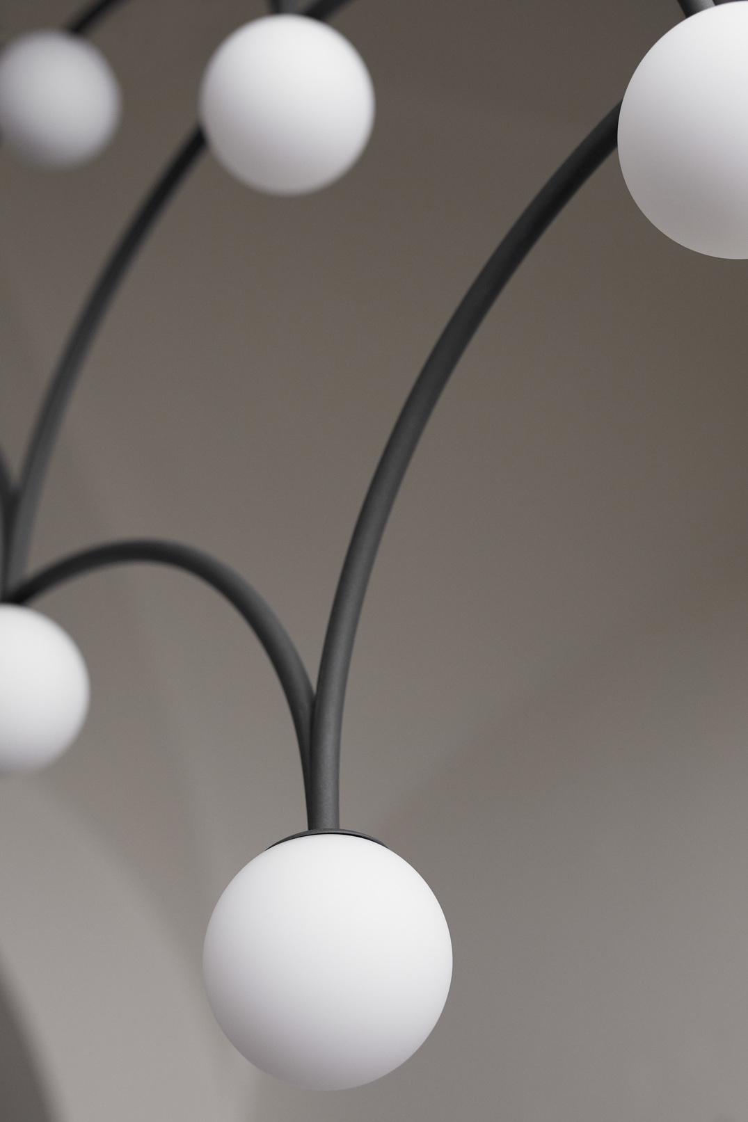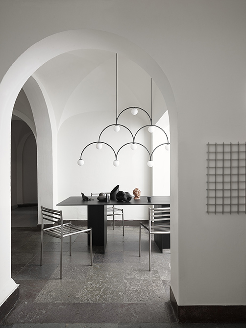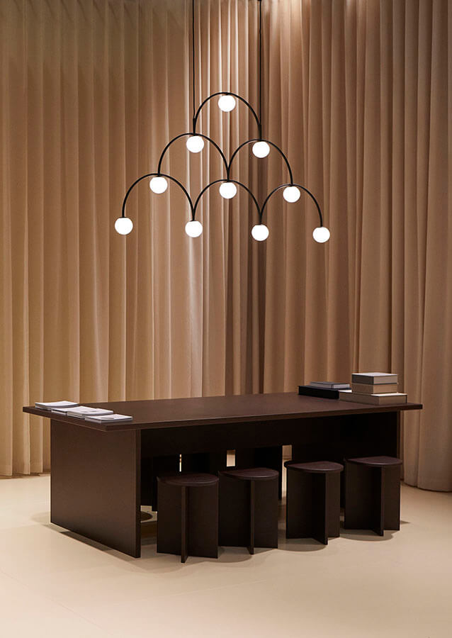 With this lamp I hope to break the tradition of pendants being equally large in all directions. Looking at all the different shapes of environments and tables, I saw the need for a lamp that is long and flat. A lamp that would match long tables and counters. A lamp to hang high or low, to decorate a space or divide it in two.