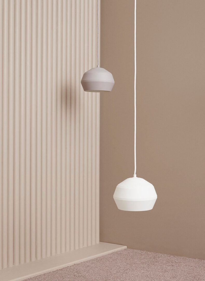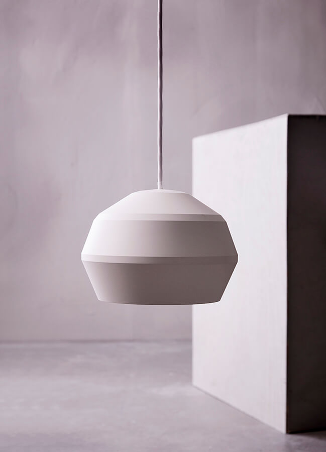Inspired by the reflection of light, the Edge lamp creates a vision of lines in different shades of color only by using the shadow. Every angle is unique and therefore reflects light differently, giving the design a variety of greys. The lamp can be displayed in a cluster or alone. The white inner shade provides plenty of light in the room.