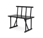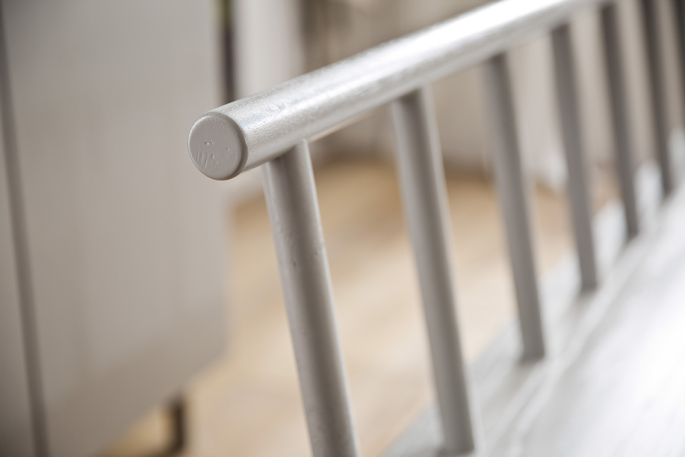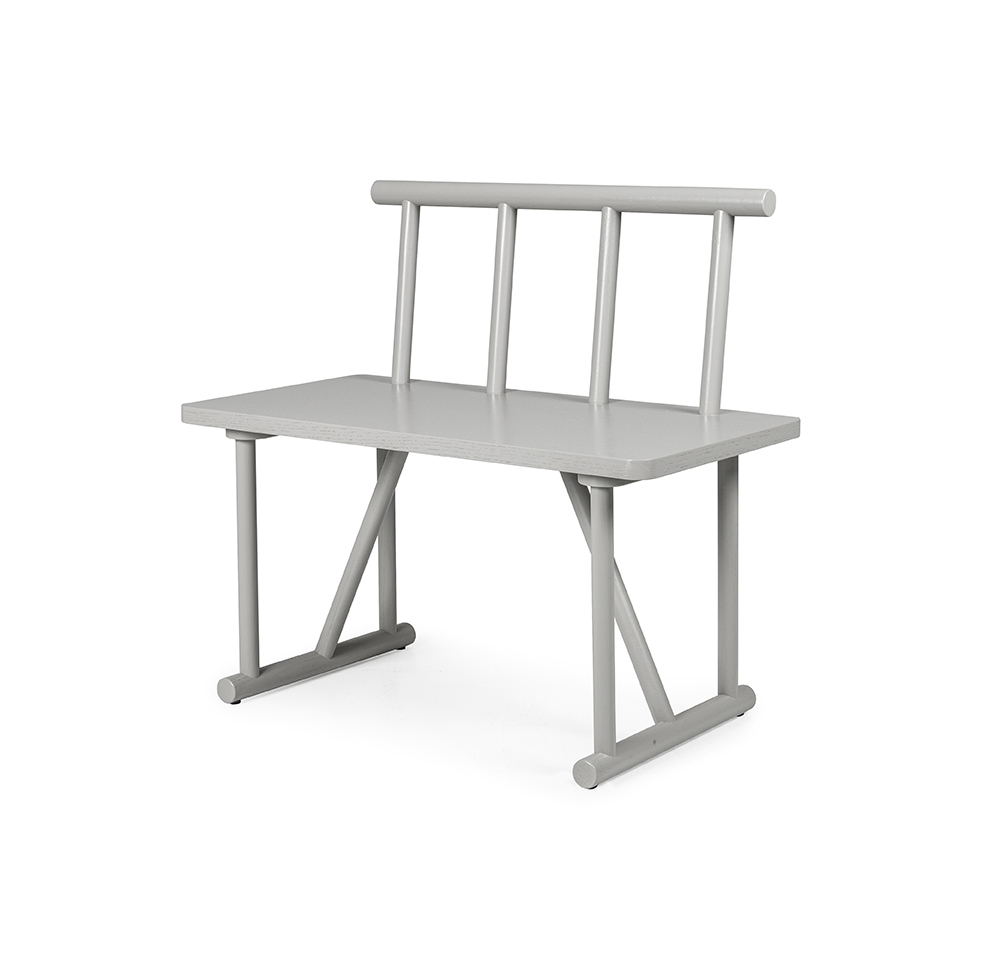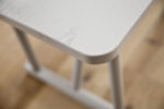 For the table and the bench‚ I used rods to build heavy-duty legs. These legs are attached to a flat seat surface made of a rubberwood core and thick birch finish. The design for the back of the bench is based upon the tradition of making ‘pinnstolar’, better know as Windsor chairs. The repetition off vertical pins gives a comfortable backrest and a nice geometric pattern that never gets boring.