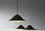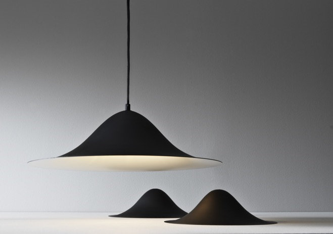 The shape of this shade is inspired by the backrest of a 1950 chair, as the brief mentioned that the target group appreciates Hans Wegner design. Several shades in a row create a nice wave effect. The shade is made of high quality steel plate that is lacquered in black or white with a diameter of 30 or 40 cm.