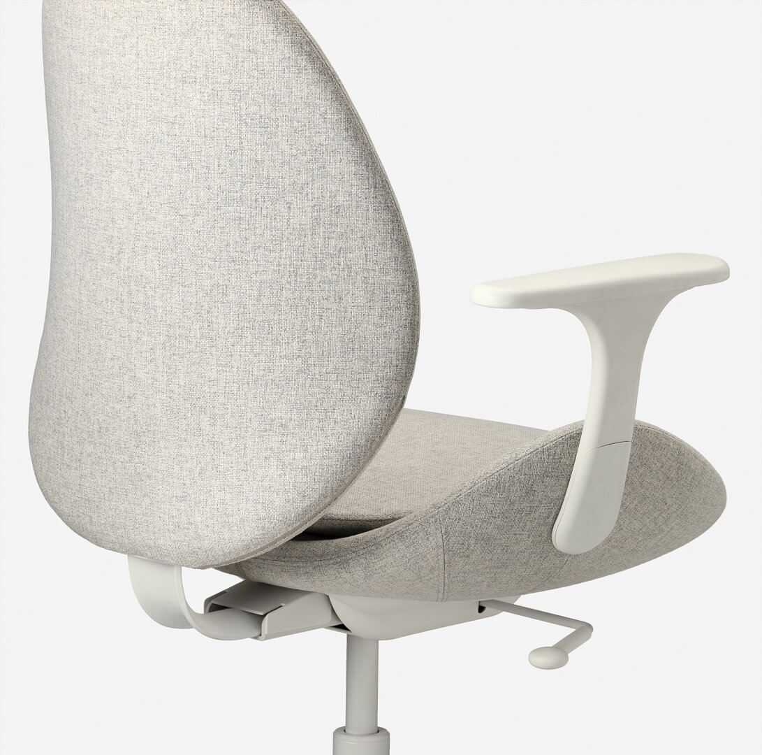 An office chair that combines high ergonomic standard with an appearance that blend well into a home environment. The Hattefjäll chair offers personalized comfort with adjustable seat and back heights, allowing the user to tailor their unique preferences. Notably, the back features a self-adjusting tilt function, dynamically responding to the user’s movements by increasing the back angle in tandem with the applied pressure when leaning backward. In essence, Hattefjäll embodies a fusion of design and user-centric innovation.