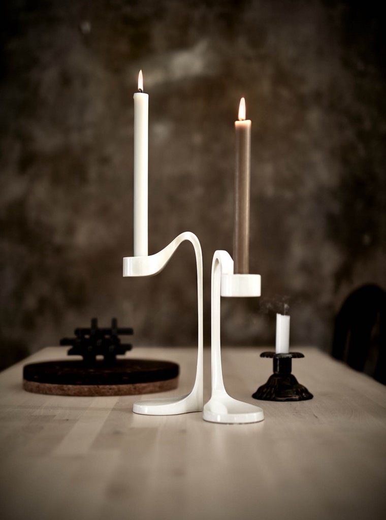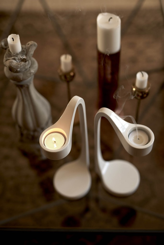 The design allows everybody to build the candleholder in their own creative way. Combine four into a candelabra, place them alone or in a row or just place two interacting with each other. The candleholder comes with an insert enabling use of both candles and tea lights.