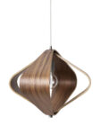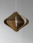 I used this bent wood technique to explore how wood can be used to filter the light from a light bulb. The panels are wider in the middle on the same level as the bulb where they partly cover the light. The shape of the lamp turns it into an interesting object that creates a natural and warm impression.