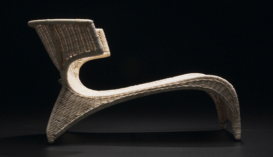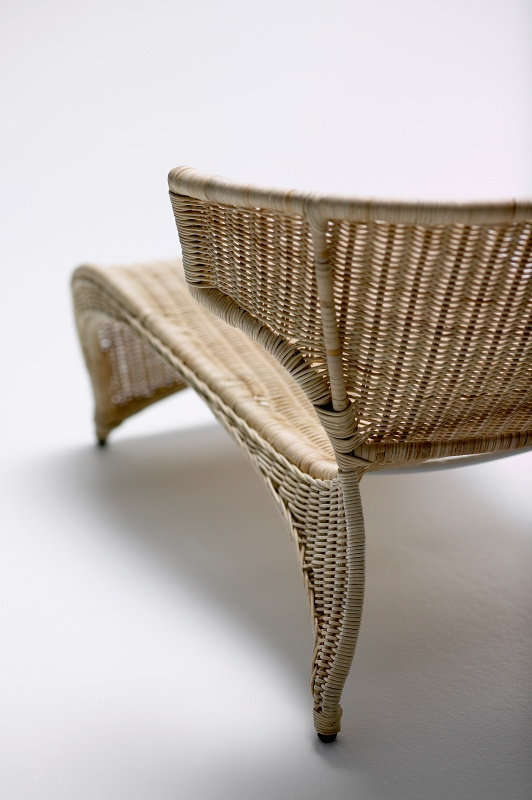 This natural material has the benefit of pliability. You can easily create surfaces that bend in different directions. This supported my vision of creating an outdoor chair with an organic shape, so blending into the nature around it. The chair is deliberately low, allowing the beach’ terrace or grass to become the side table while reclining with a cold drink. The chair was developed and produced in Thailand with the help of the exquisite weaving technique experts.
