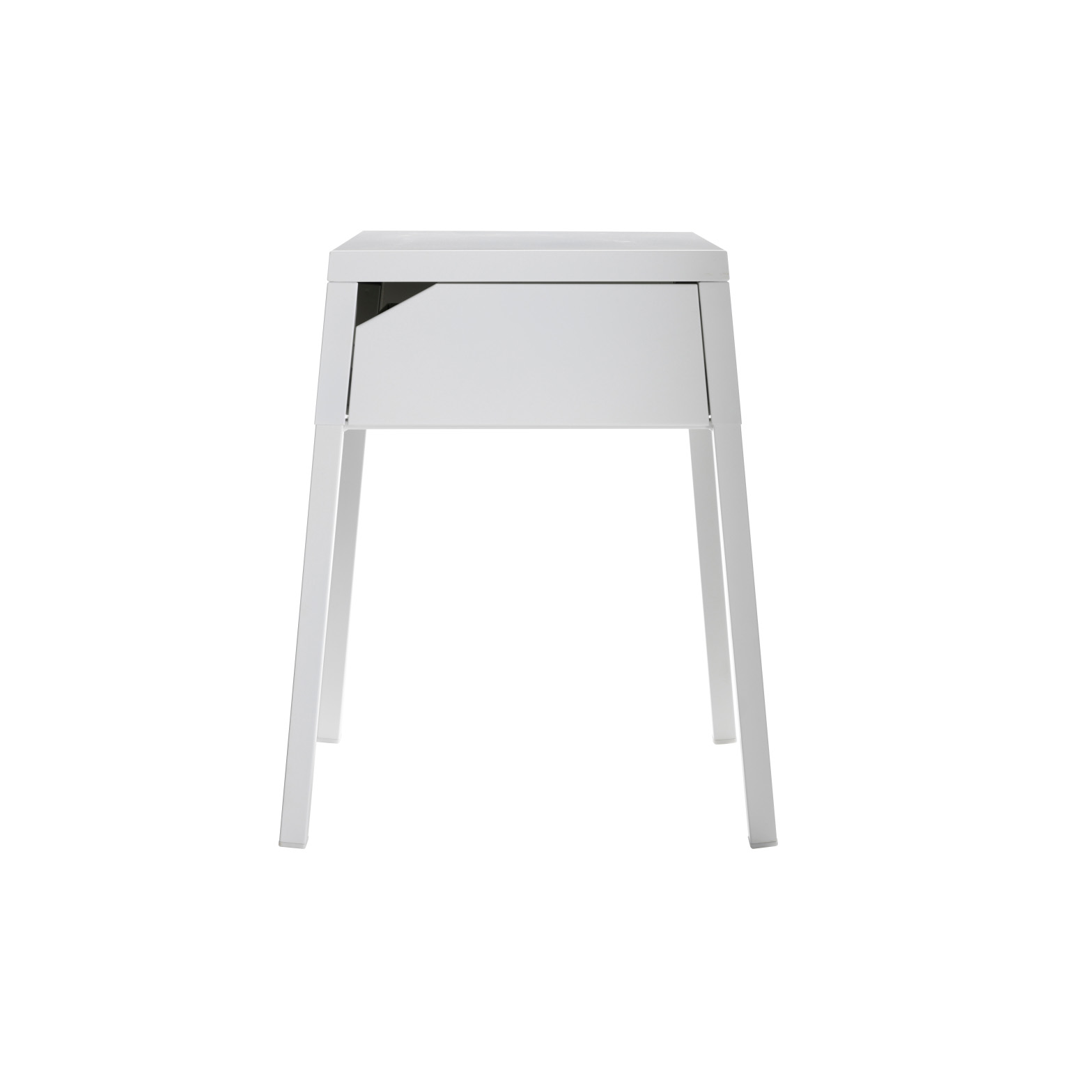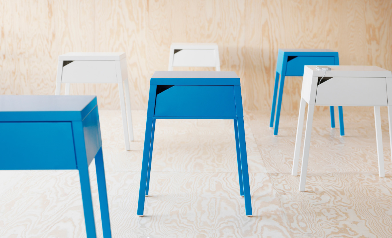 When I designed SELJE I wanted to create a bedside table with a strong character and contemporary expression. The clean, straight lines give a great silhouette. The small triangular cut-out in the corner gives the side table its unique identity and doubles as the handle to pull out the drawer. There is plenty of room in the drawer for a book, your eyeglasses and phone charger. The phone charger cord can be run neatly behind the drawer to the wall socket. We realized our ideal of on making the table really easy to assemble with the result that there aren’t any screws at all.