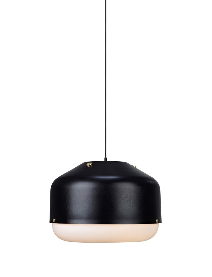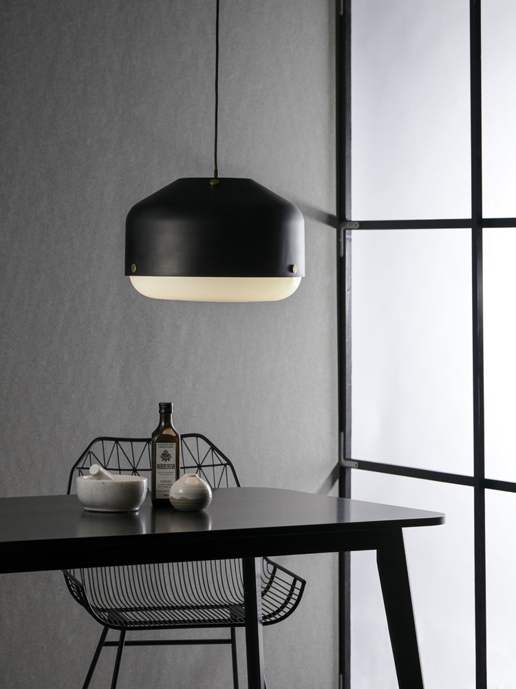 My idea was to make the diffuser part of the design. A bowl shaped plate in plastic is connected to the metal shade with nice brass nuts. The diffuser sits a little way under the shade and spreads the light in a beautiful soft way. Making a table version of this concept was the next step and this turned out to be a lamp that looks simple and sophisticated.
